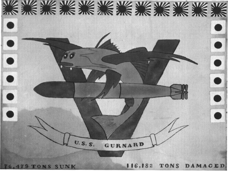 Standing out of Pearl Harbor 16 April 1944 for her fifth war patrol in the eastern Celebes Sea south of Mindanao, GURNARD was on station by May 4. Only two days later she encountered a Japanese troop convoy carrying an infantry division south from Shanghai. These troops were intended as reinforcements for New Guinea in the hope of stopping or delaying General MacArthur's expected offensive. Sighting the convoy on the morning of 6 May, GURNARD closed on the transports. In position at 1300, she fired two three-torpedo slavos which hit four of the Japanese transports. As one of the escorting destroyers headed for her, GURNARD went deep and rigged for depth charge attack. During the heavy depth-charge attack which followed, breaking-up noises were heard, indicating that GURNARD's torpedos had struck home. After the submarine had evaded 98 depth charges the escorts broke off their attack. GURNARD came to the surface shortly to discover one of the torpedoed transports still afloat and burning.