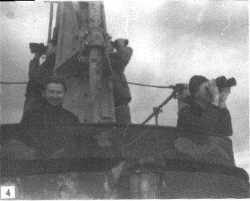 Here are some great underway pictures: Some crew members getting some fresh air topside. Lookouts being very attentive. Bob Harwood has the Conn.. The CO Lieutenant Commander Charles H. Andrews takes a breather.