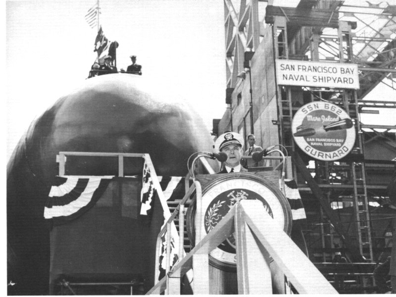 The keel for the USS GURNARD (SSN 662) was laid on 22 December 1964, at the Mare Island Naval Shipyard. She was the fourteenth of thirty-seven Sturgeon class fast attack submarines, and the second naval ship to bear the name. After being christened by Mrs. George P. Miller, wife of representative George P. Miller of California, GURNARD launched on 20 May 1967. The first contingent of the commissioning crew arrived in Vallejo in July 1967, and completed construction, training and testing. With many long hours and hard work behind them, the crew, commanded by Commander William S. Cole, Jr., was commissioned GURNARD on 6 December 1968 at the San Francisco Bay Naval Shipyard.