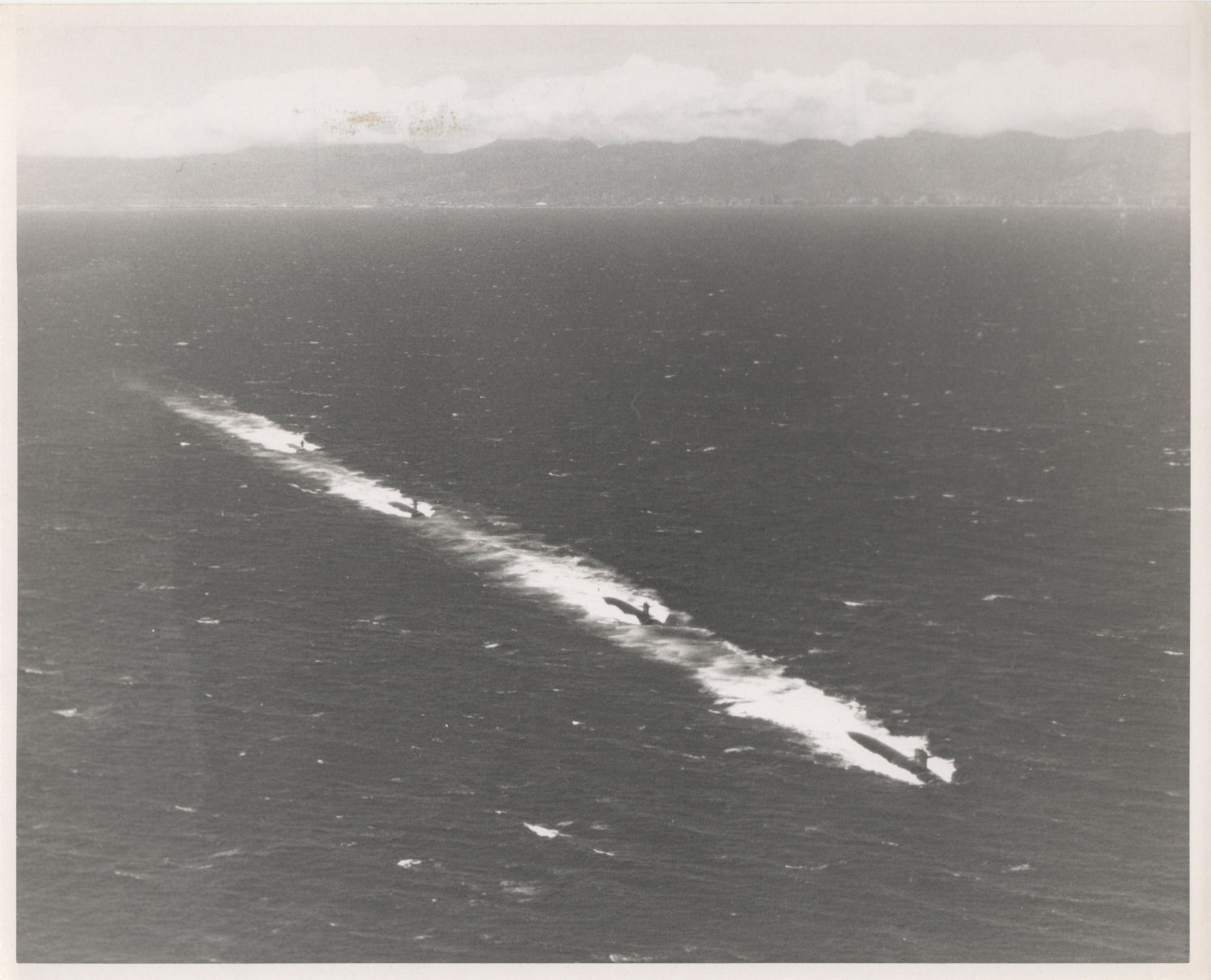 Surface transit looking aft from the bridge, (Nice wake..at least a FULL bell),