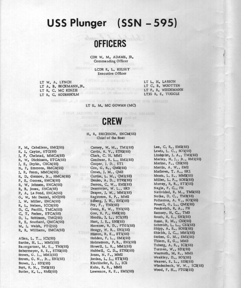 richer legacy to her successor. More USS Plunger SSN-595 info on Wikipedia. More USS Plunger SSN-595 info on Navsource. USS Plunger SSN-595 Plankowners. A large color jpg of USS