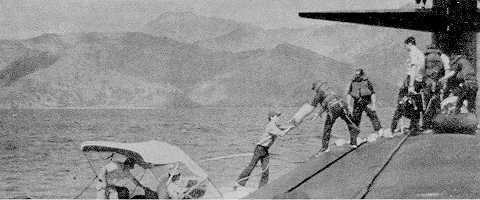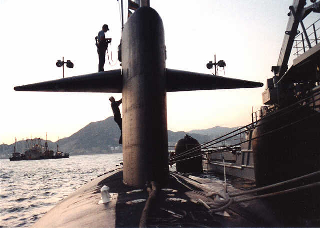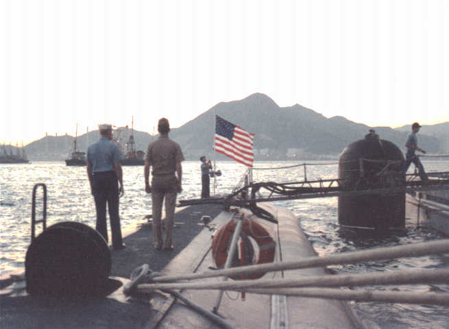 Hong Kong, moored to USNS Catawba, far right SK1(SS) Jerry Brown,