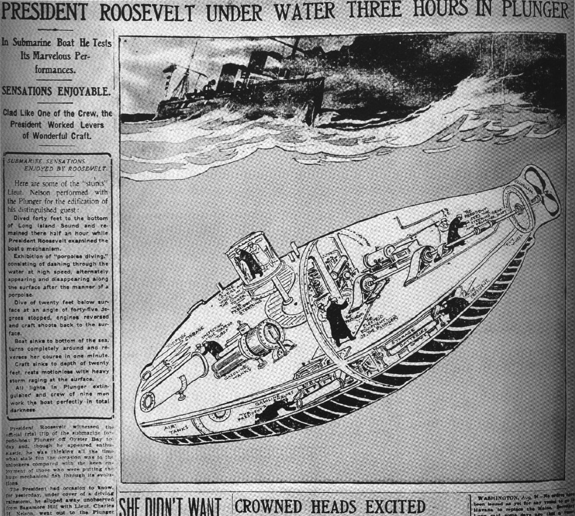 President Theodore Roosevelt, the first presidential visit to a US submarine. Included in his